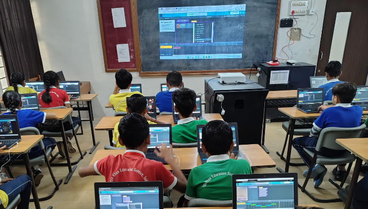- Students at the Aga Khan School, Sidhpur practising the software.